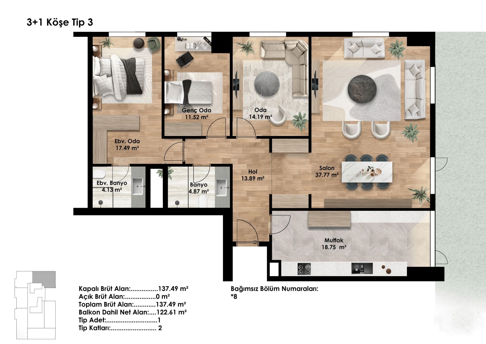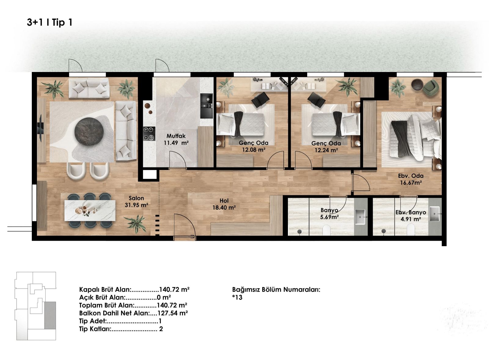 3 + 1 KAT PLANLARI